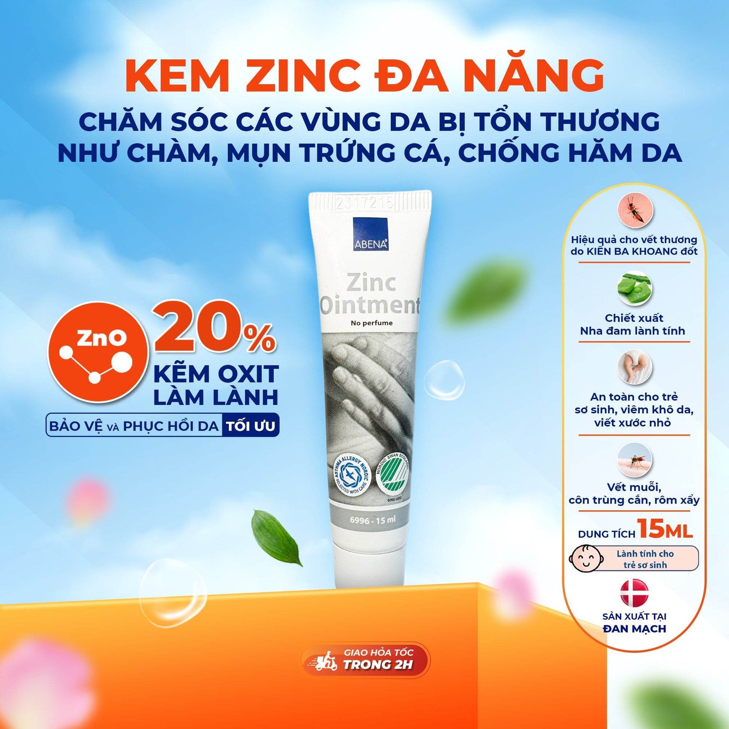 Kem đa năng Abena Zinc Ointment - Nhập Khẩu Đan Mạch - Chăm sóc các vùng da bị tổn thương như chàm, côn trùng cắn - 15ml Đặt hàng trước, sẽ giao ngay khi có hàng.