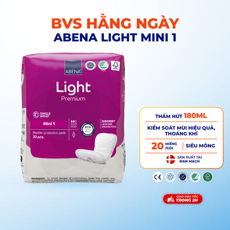 Băng vệ sinh hằng ngày Abena Light Mini 1 - Thấm hút 180ml - Nhập khẩu Đan Mạch (Gói 20 miếng)
