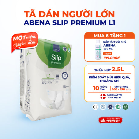Tã dán người lớn Abena Slip premium M1 - Thấm hút 2 lít 1 miếng nguyên đêm