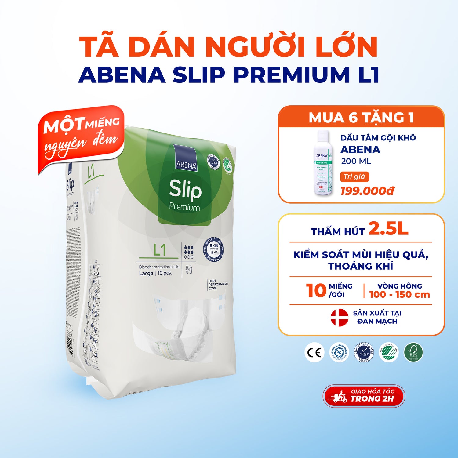 Tã dán người lớn cao cấp Abena Slip Premium L1 siêu thấm hút lên đến 2.5 lít thoải mái ngủ qua đêm - Nhập khẩu Đan Mạch