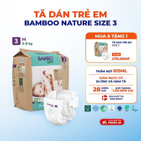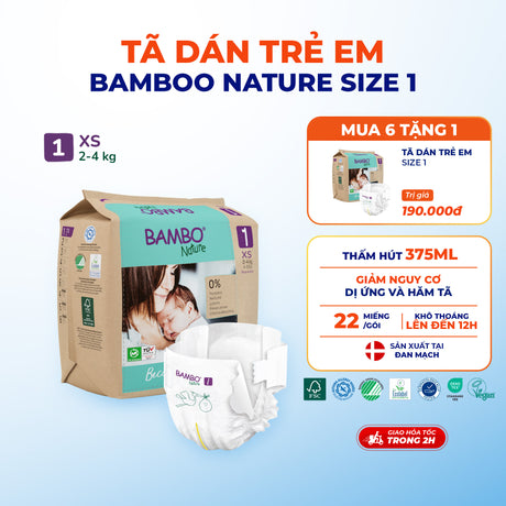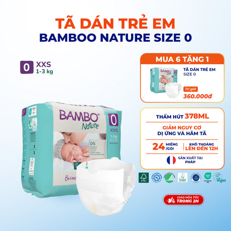 Tã Dán Hữu Cơ Trẻ Em Cao Cấp Bambo Nature - Thoáng Khí - Mỏng Nhẹ, An Toàn Cho Da Bé - Đạt Chứng Nhận An Toàn Quốc Tế