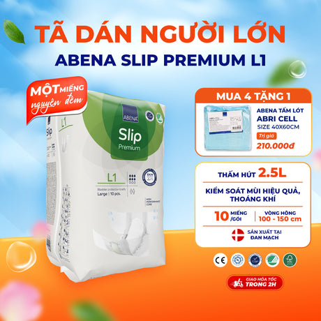 Tã dán người lớn Abena Slip premium M1 - Thấm hút 2 lít 1 miếng nguyên đêm